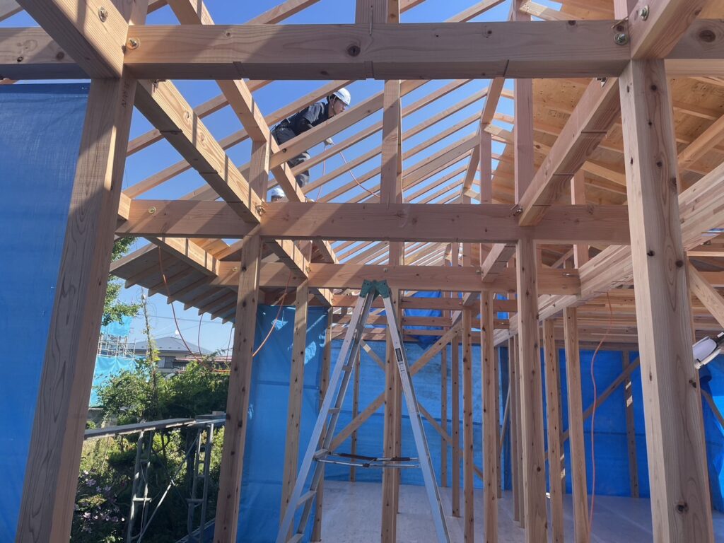 家の骨組みが出来上がり、大工工事が着々と進んでいきます。