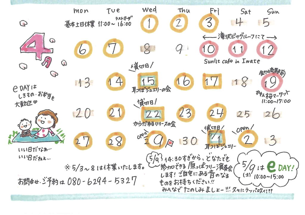 4月15日(水) ※予約制・貸切日