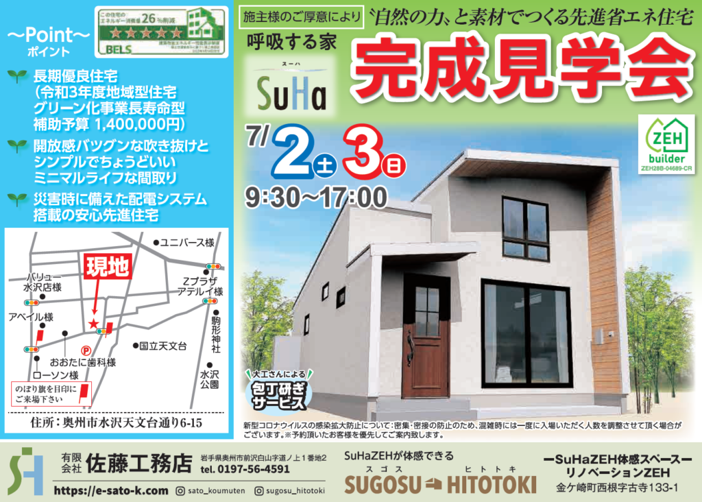 7月2日・3日の二日間、完成見学会を開催いたします。